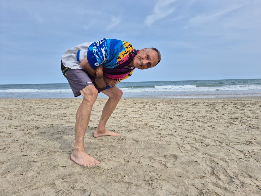 Am nächsten Morgen gehe ich nach einem gemütlichen Frühstück mit dem Bike den nahegelegenen Strand erkunden und ein paar Restaurants ausfindig machen. Diese sind so nahe gelegen, dass ich bestimmt zwischendurch aufs Kochen verzichten kann 😜. Nach einem selbst geschnippelten, grossen Salat gehe ich wieder zum Strand, der nur wenige hundert Meter entfernt liegt. Das Meer ist für diese Jahreszeit erstaunlich warm, ich schätze mal 22° und gehe schwimmen. Nach einem Stück hinausschwimmen komme ich auf eine herrliche Sandbank, auf welcher ich wieder stehen und zum Strand zurückschauen kann. Eine ungewohnte Perspektive, die es sonst nur von einem Boot aus gibt.