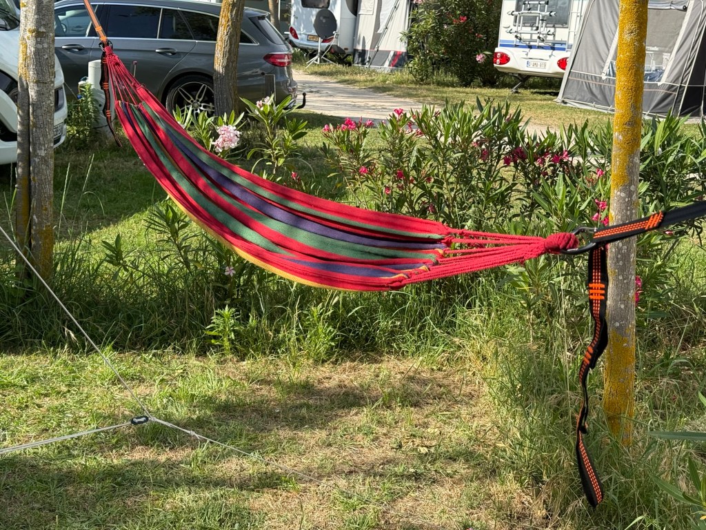 Nach einer sportlich intensiven, aber unglaublich tollen Zeit mit Biken, Wandern und Kanu fahren reise ich Richtung Süden nach Marseillan-Plage. Auf einem familiären, gemütlich anmutenden Camping richte ich mich auf einem Platz im Grünen ein. Der Stellplatz ist nicht gerade üppig gross, reicht aber für meine Einrichtung aus. Es gibt sogar zwei geeignete Bäumchen, um meine Hängematte zu installieren. Ich habe hier nämlich vor, zu chillen und die warme Temperatur zu geniessen.