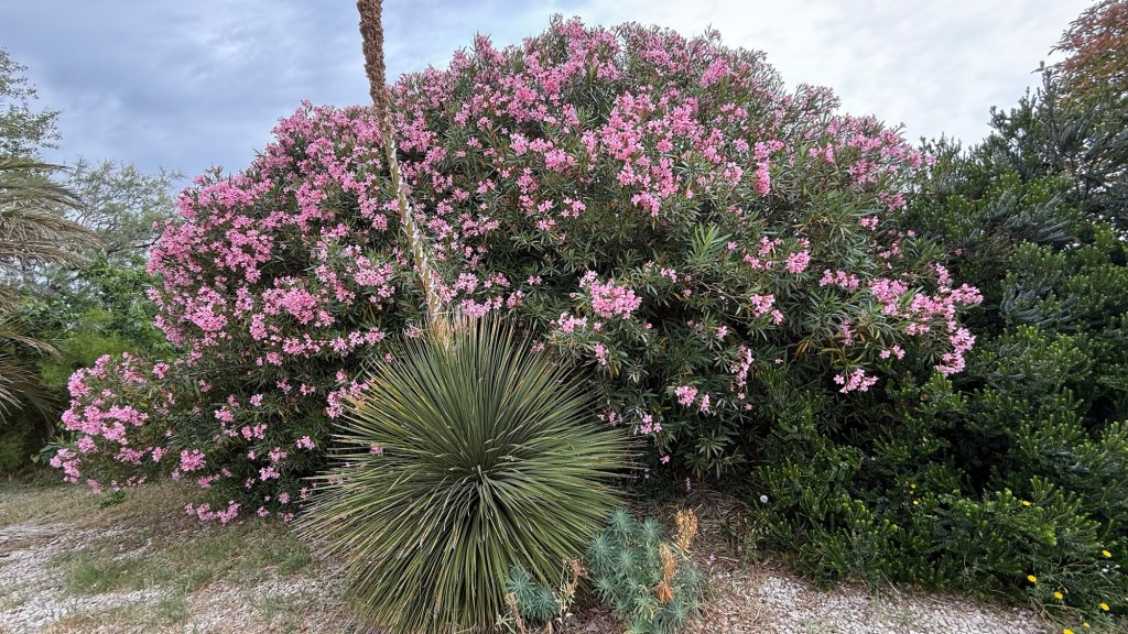 Tags darauf unternehmen wir zusammen eine Erkundungstour mit den Fahrrädern den Dünen entlang nach Sète, eine hübsche Hafenstadt. Das Wetter ist unsicher und wir werden unterwegs prompt vom Regen erwischt 💦. Aber schön ist es trotzdem und wir bestaunen überall die wunderschönen, interessanten Pflanzen. Die Wetterstimmung animiert uns, coole Fotos zu schiessen. Am Abend essen wir zusammen vor einem der Wohnmobile meiner Freunde.